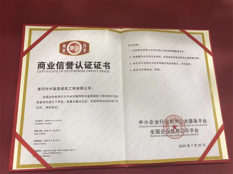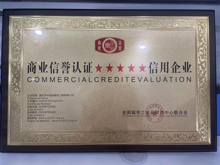 商業(yè)信譽認證證書